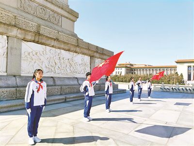 本報訊(記者 劉婧)昨天上午,來自北京市京源學校的24名少先隊員來到天安門廣場,站立首都少年先鋒崗。