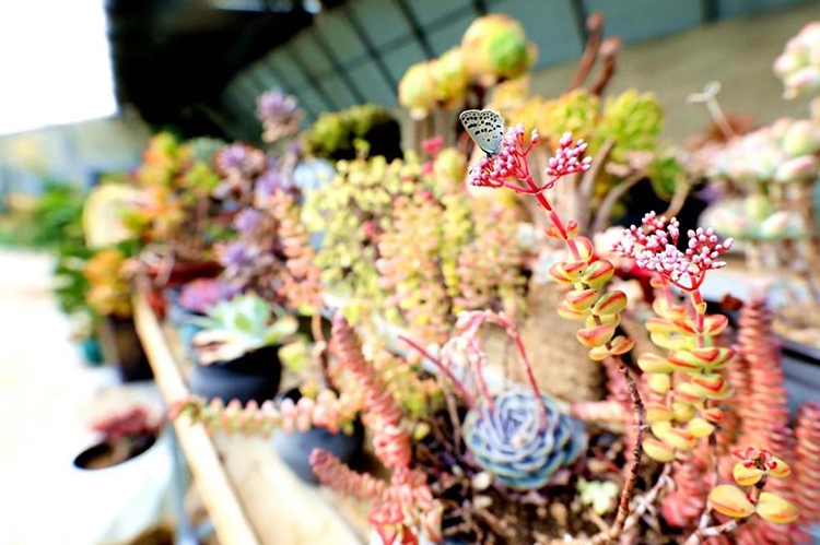 “目前我們基地投資建設的6個農(nóng)業(yè)溫室大棚,占地面積6700平方米,可售多肉品種達170余種,春秋兩季是多肉植物生長最旺盛的季節(jié),溫差大,且顏色鮮艷。目前,我們的主要工作就是對多肉植物進行繁殖,根據(jù)植物種類的不同,繁殖的方法主要有播種繁殖、扦插繁殖、分株繁殖以及嫁接繁殖?!倍嗳饣刎撠熑寺沸闳A介紹說。