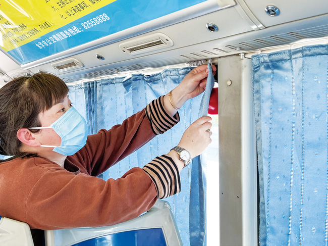 4月6日,金華市區(qū)523路公交車開始安裝遮陽簾。隨著天氣逐漸轉(zhuǎn)熱,金華金東所有公交車將陸續(xù)安裝上遮陽簾。車隊(duì)長周英飛說,安裝了遮陽簾,乘車舒適度會大為改善。(李建林)