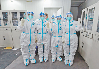 4月8日晚,隨著海南省援滬醫(yī)療隊近百名醫(yī)護人員的進駐,上海嘉定南翔方艙醫(yī)院正式投入運行。圖為醫(yī)護人員在入艙前加油鼓勁。