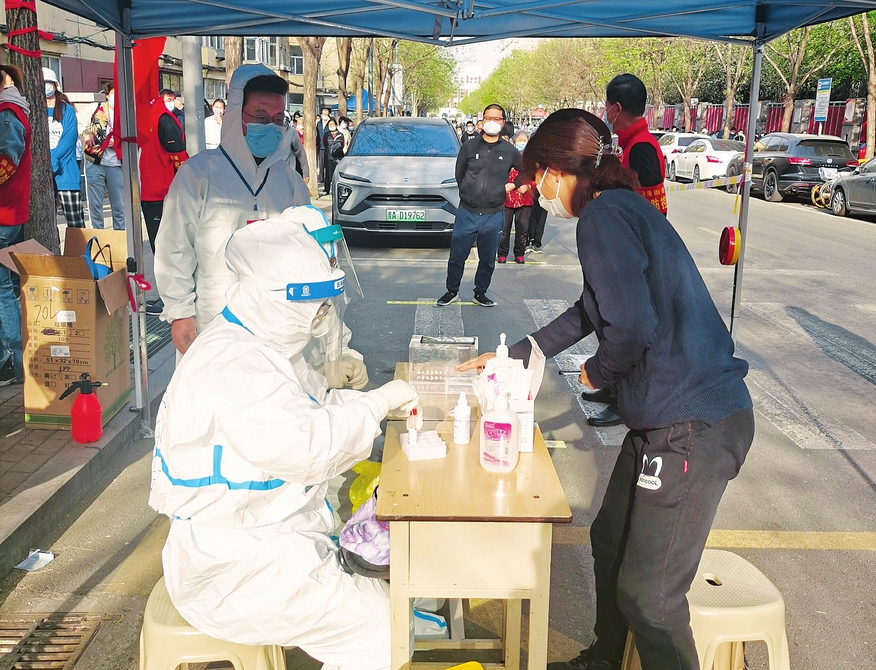4月11日,省城迎澤區(qū)進(jìn)行居民核酸采樣。青年路小學(xué)教育集團(tuán)首批50名教師志愿者分別到迎澤區(qū)六個(gè)社區(qū)服務(wù)集合地點(diǎn)開展核酸檢測志愿服務(wù)。他們用行動詮釋了在非常時(shí)期的使命與擔(dān)當(dāng)。(記者王瑞瑞攝)