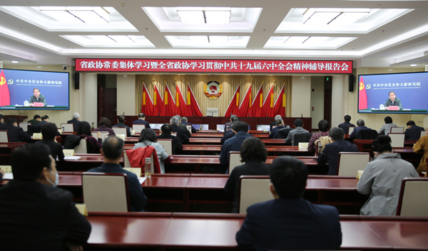 河北省政協(xié)舉辦常委集體學(xué)習(xí)暨全省政協(xié)學(xué)習(xí)貫徹中共十九屆六中全會(huì)精神輔導(dǎo)報(bào)告會(huì)對(duì)中共十九屆六中全會(huì)精神進(jìn)行系統(tǒng)深入解讀。胡澤瑞攝