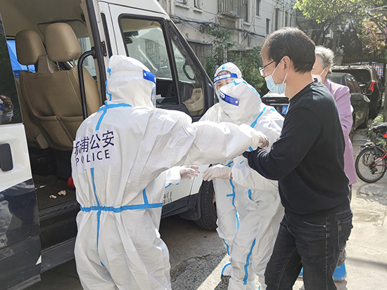 封控管理期間,要求普通市民足不出戶,要想轉(zhuǎn)運彭老伯去到他女兒家,首先就要確認清楚,彭老伯是否具備外出條件。據(jù)了解,彭老伯所在的樓棟,最近14天核酸檢測全部陰性。因接到求助時,楊浦區(qū)尚未通報“三區(qū)”安排,考慮到彭老伯的實際需求,四平路派出所立即聯(lián)系相關(guān)防疫部門,得到了可以在做好防護的情況下出小區(qū)的答復(fù)。