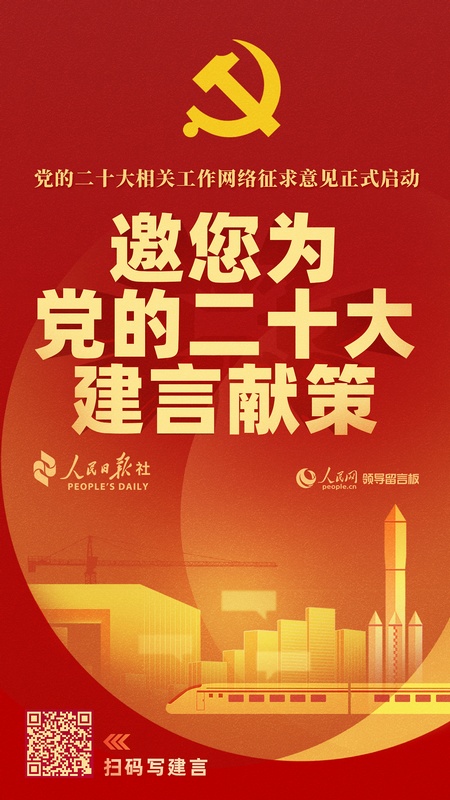 黨的十九屆六中全會(huì)決定,黨的二十大于2022年下半年在北京召開。開展黨的二十大相關(guān)工作網(wǎng)絡(luò)征求意見,充分彰顯了以習(xí)近平同志為核心的黨中央發(fā)揚(yáng)民主、集思廣益的優(yōu)良作風(fēng),是我們黨堅(jiān)持以人民為中心、尊重人民主體地位、走好群眾路線的重要體現(xiàn),是發(fā)揮中國特色社會(huì)主義制度優(yōu)勢、推進(jìn)全過程人民民主的生動(dòng)實(shí)踐,是適應(yīng)互聯(lián)網(wǎng)時(shí)代新要求、推進(jìn)國家治理體系和治理能力現(xiàn)代化的有益探索。
