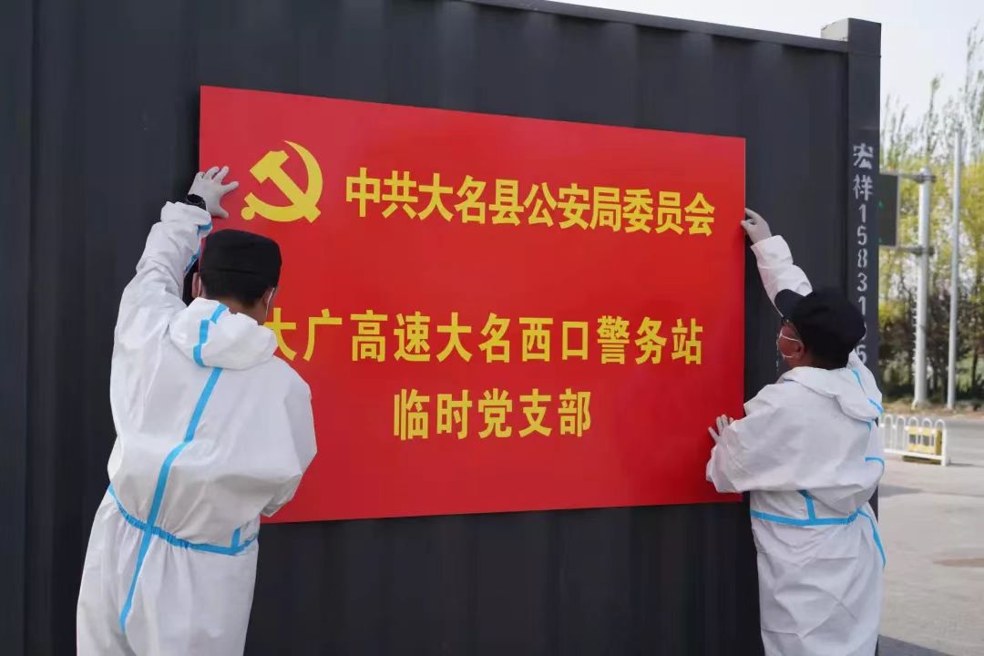 為加強疫情防控,大名公安充分發(fā)揮基層黨支部的戰(zhàn)斗堡壘作用和黨員干部先鋒模范作用,在一線設(shè)立臨時黨支部,做到關(guān)鍵時刻有組織在,關(guān)鍵崗位有黨員在。“臨時黨支部的成立,既是廣大黨員沖鋒在前的‘催征鼓’,也是全體民警抗疫護民的‘作戰(zhàn)令’?!贝竺h公安局政委李軍輝說。