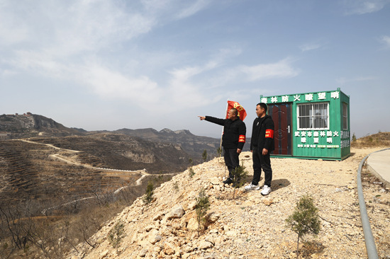 3月23日,武安市防火巡視人員正在查看防護(hù)區(qū)。李樹鋒攝