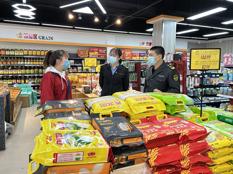 石樓縣市場(chǎng)監(jiān)督管理局執(zhí)法人員對(duì)超市進(jìn)行監(jiān)督檢查。石樓縣融媒體中心供圖