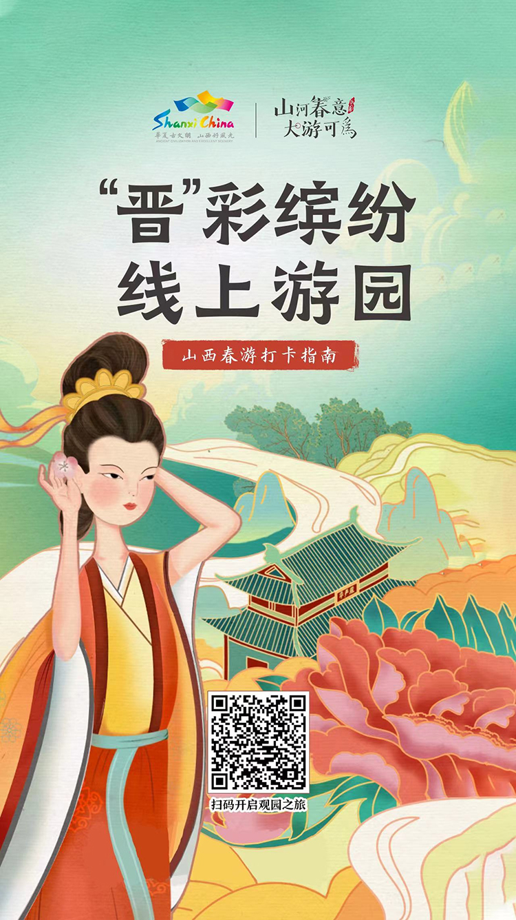 人民網(wǎng)太原4月20日電(桑莉媛)花開(kāi)晉染、珍味晉有、芳華晉藝、匠心晉展。近日,山西省文化和旅游廳策劃推出了《晉彩繽紛·線上游園》互動(dòng)H5,以四大板塊來(lái)展示山西春日之美,邀廣大網(wǎng)友一起線上游園,云賞山西好風(fēng)光!