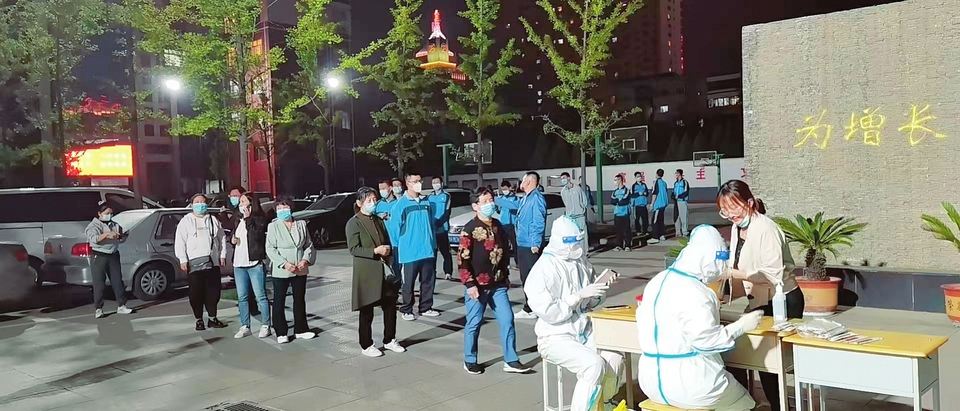 在太原市第三十中學,醫(yī)務(wù)人員為該校師生做核酸檢測。