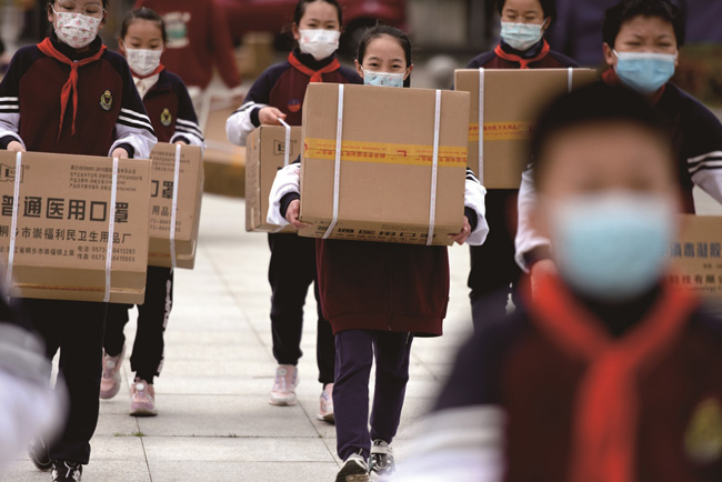 近日,嘉興秀洲一學(xué)校的愛心家長,為學(xué)校捐贈了5萬只口罩、七八百瓶洗手液和50多把額溫槍,助力學(xué)校疫情防控工作,筑牢安全防線。(馮玉坤)