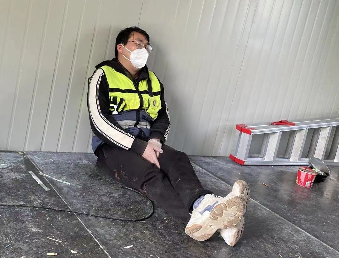 “3月底的上海,還有點冷,沒有被子蓋,我們就裹著衣服,每天只能睡不超過兩小時?!鄙虾=üぜ瘓F副總工程師王美華是施工現(xiàn)場為數(shù)不多的女性。現(xiàn)場24小時不停工,工人兩班倒,交班后就地鋪板睡覺,但應急指揮部管理人員要隨時待命,解決現(xiàn)場各類問題,只能找間隙蜷縮在車里休息一下。