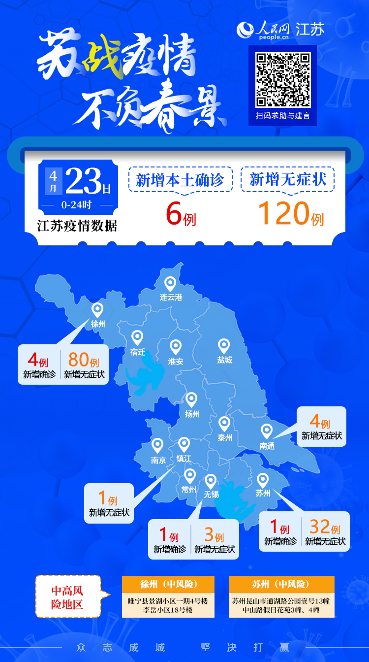 4月23日江蘇新增本土確診病例6例 本土無癥狀感染者120例