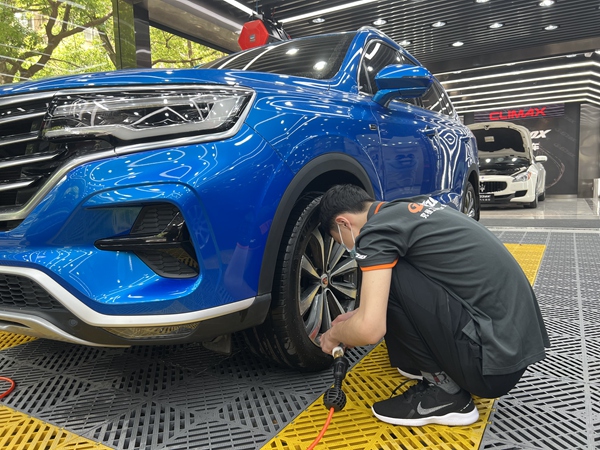 圖為南京市鼓樓區(qū)擬創(chuàng)建的優(yōu)質(zhì)服務(wù)洗車場內(nèi),工作人員在給車輛清洗輪轂。曈暚攝
