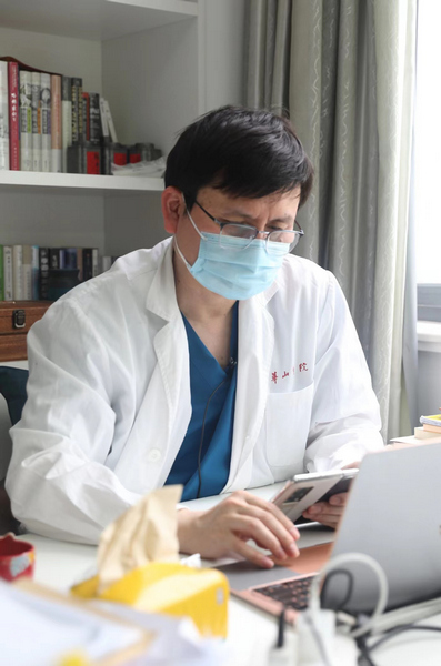張文宏和專家連線會(huì)診各定點(diǎn)醫(yī)院的重癥患者。
