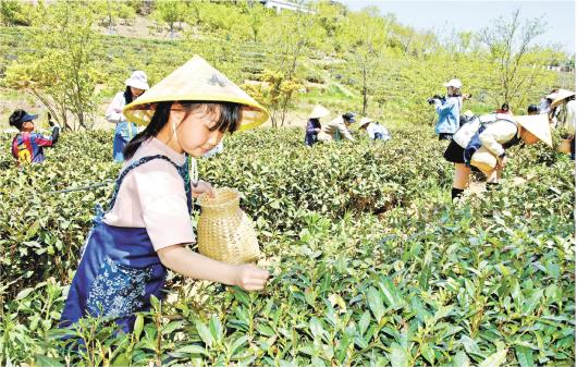 當日,青島春光明媚,不少游客參加采茶、制茶活動,體驗“當一天茶農”的樂趣。(李媛)