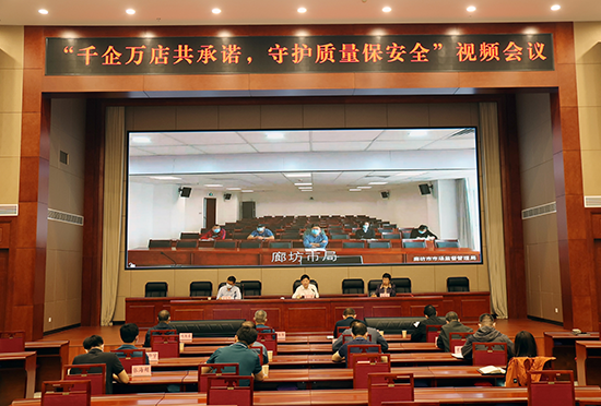 “千企萬店共承諾 守護(hù)質(zhì)量保安全”視頻會(huì)議現(xiàn)場。 河北省市場監(jiān)管局供圖