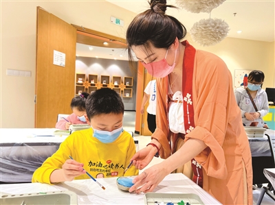 走進(jìn)臨平智慧圖書館,仿佛一秒“穿越”宋朝:攤好香席、鋪好香料,鋪灰、打篆、燃篆……身著漢服的打香人低頭焚香,裊裊青煙讓人不覺靜下心來;暖盞、調(diào)膏、擊拂……極具雅致的點(diǎn)茶表演將宋人吃茶的樂趣展現(xiàn)得淋漓盡致;起勢(shì)、抹弦、刮奏……撫琴人指尖翻飛,行云流水的樂曲讓聽眾陶醉其中……圖書館內(nèi),市民或欣賞或體驗(yàn)焚香點(diǎn)茶、撫琴對(duì)弈、書法繪畫、品茶飲酒、插花賞石等活動(dòng),當(dāng)了一回宋朝的“文藝青年”。