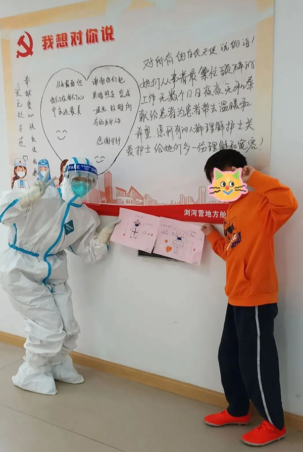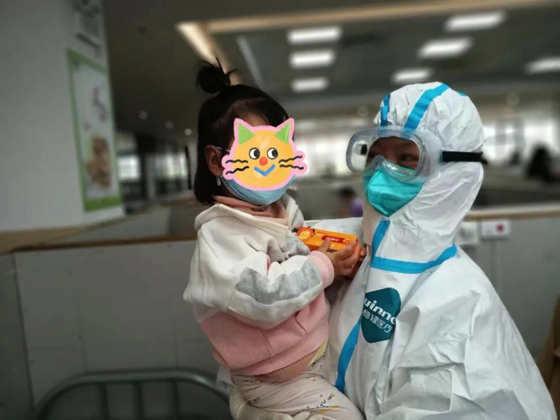 低齡患兒需要奶粉和尿不濕,有的家庭來方艙前帶的不多,“大白”們還專門籌集了一批母嬰用品給他們?!皩?duì)患兒來說,加強(qiáng)心理疏導(dǎo)和陪伴是很重要的,如果患兒是陽性,陪護(hù)人員是陰性的話,只要簽署承諾書,就可以進(jìn)親子艙陪護(hù),解決患兒分離焦慮?!庇崃止鸾榻B道。