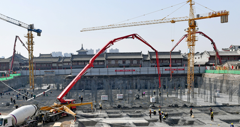 4月10日,大同古城戶部角綜合文旅項目工地上,機(jī)器轟鳴。大同市統(tǒng)籌經(jīng)濟(jì)社會發(fā)展和疫情防控工作,在落實(shí)各項防疫措施的同時,復(fù)工復(fù)產(chǎn)也在緊張進(jìn)行中。李冬賓 攝