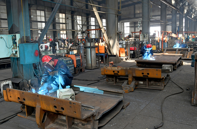 4月16日,大同市同華礦機(jī)制造有限責(zé)任公司生產(chǎn)車間一景。大同市對各生產(chǎn)企業(yè)工作人員進(jìn)行閉環(huán)管理,做到疫情期間不停工。李冬賓 攝