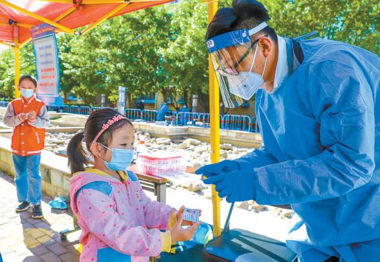 昨天清晨,天剛蒙蒙亮,鄭爍就到達(dá)集結(jié)點位。核酸檢測開始后,鄭爍主要負(fù)責(zé)現(xiàn)場秩序維護(hù)引導(dǎo)、掃碼登記、查驗健康寶、協(xié)助老年人做好信息登記等工作。“昨天北京的最高氣溫達(dá)到32攝氏度,核酸檢測期間,我們志愿者小組為上千位居民提供了服務(wù),這期間一個跟著媽媽來做核酸的小女孩每路過一位志愿者都會主動說一聲‘叔叔阿姨,辛苦了!’聽著孩子甜美的問候,再累也值了!”鄭爍告訴記者。