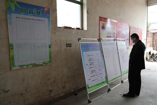 居民在查看老舊小區(qū)改造情況公示。 張明月攝