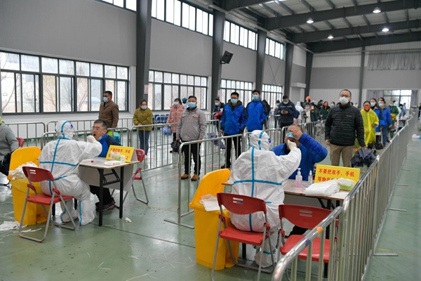核酸檢測(cè)團(tuán)隊(duì)走進(jìn)制造業(yè)企業(yè)。濱江開發(fā)區(qū)供圖
