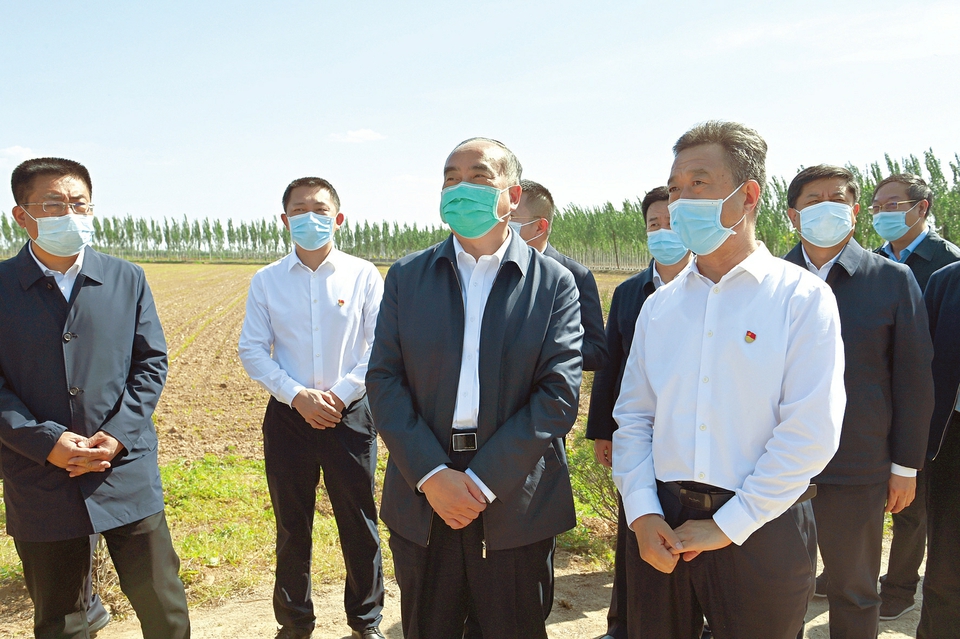五月十七日下午,省委書記林武來到汾陽市賈家莊鎮(zhèn)古浮圖村,走進(jìn)田間察看玉米、大豆幼苗長(zhǎng)勢(shì)和土壤墑情。記者史曉波攝