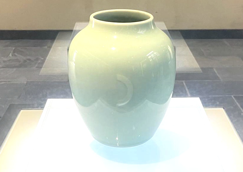 清乾隆豆青釉月牙罐。松陽(yáng)縣茶葉博物館供圖