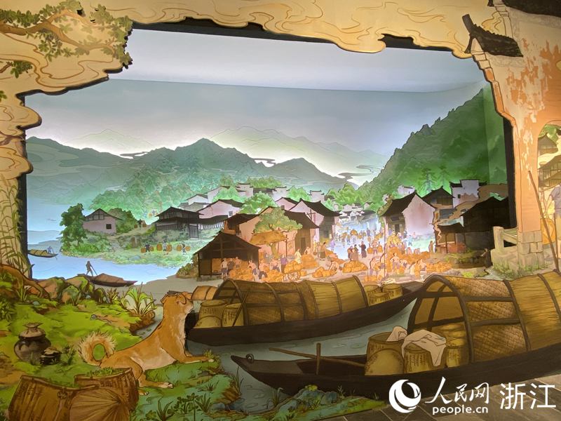 “茶之道”展廳生動(dòng)還原了古代松陽(yáng)縣集市交易的繁榮盛況。人民網(wǎng) 方彭依夢(mèng)攝