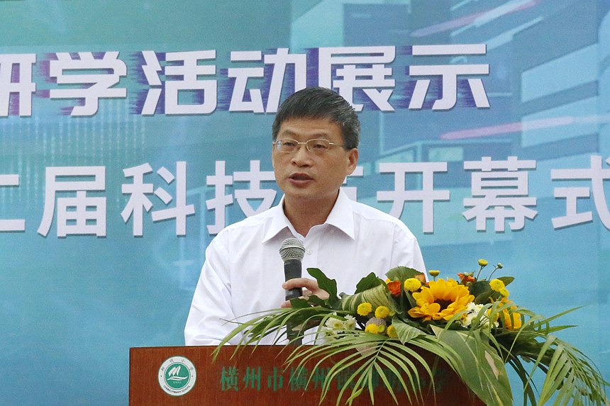 5月24日,由南寧市科技館、橫州市教育局、橫州市科學(xué)技術(shù)協(xié)會(huì)主辦的“科學(xué)筑夢(mèng)想 智慧創(chuàng)未來(lái)”南寧市“燎原計(jì)劃”科創(chuàng)研學(xué)活動(dòng)展示暨橫州市橫州鎮(zhèn)柳明小學(xué)第二屆科技節(jié)開幕式在橫州市舉辦。南寧市科技館黨支部書記、館長(zhǎng),南寧市青少年科技中心主任蒙科祺出席活動(dòng)并為開幕式致辭。