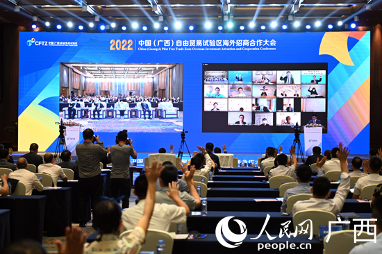人民網南寧5月27日電 (記者彭遠賀)5月27日下午,2022中國(廣西)自由貿易試驗區(qū)海外招商合作大會在南寧舉行。大會公布了首批五位“廣西自貿招商大使”名單并頒發(fā)聘任證書。