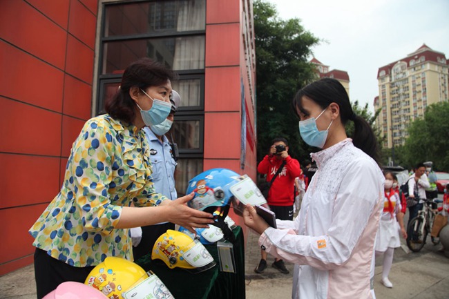 臨近6月,天氣漸熱,騎電動車接送孩子上、放學的家長增多,但仍有部分家長未重視頭盔對交通參與者的保護作用,騎行途中未嚴格執(zhí)行戴頭盔的法律規(guī)定。為進一步提高廣大師生、家長的交通安全意識,增強學生自我保護能力,共同守護校園交通安全。為此,家、校、警聯(lián)合行動,組織了這次活動。