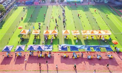 6月5日,天津市有序開展全員核酸檢測。圖為南開區(qū)中心小學(xué)核酸檢測采樣點(diǎn)現(xiàn)場。 記者 胡凌云 通訊員 王英浩 攝