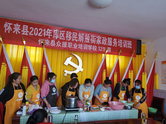 懷來(lái)縣眾援職業(yè)培訓(xùn)學(xué)校對(duì)新保安鎮(zhèn)解放街村部分婦女進(jìn)行中式面點(diǎn)專(zhuān)業(yè)培訓(xùn)。 懷來(lái)縣委組織部供圖