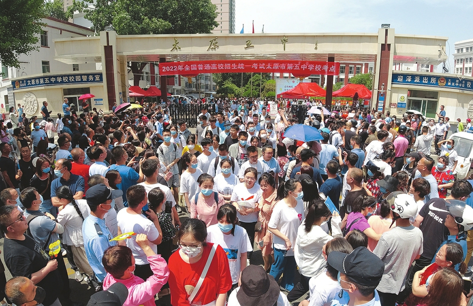 6月7日,太原五中考點,結束語文考試的考生們走出考場。記者李兆民攝