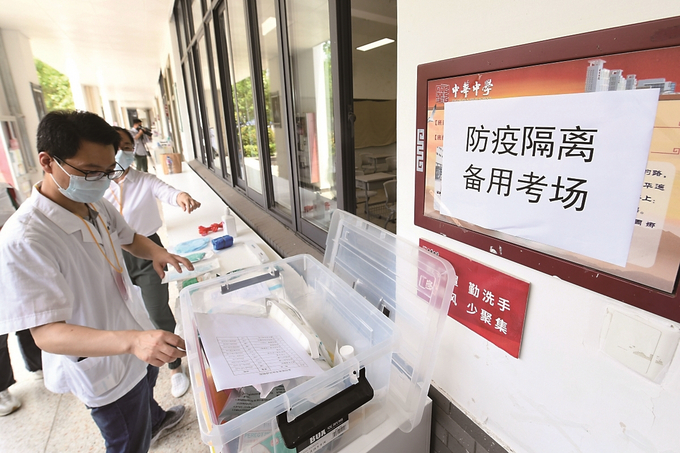 南京市中華中學考點備齊防疫物資,保障平安高考。 本報記者 萬程鵬 攝