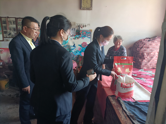蔚縣國(guó)威大藥房開(kāi)展愛(ài)心幫扶活動(dòng),為桃花鎮(zhèn)謝家廟村生活困難老人送去米、面、油等生活用品。 蔚縣縣委組織部供圖