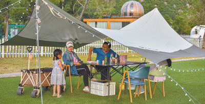 “三五好友結(jié)伴而行,喝茶賞景,好不愜意?!背虝哉f,“現(xiàn)在市場上有很多比較成熟的露營產(chǎn)品可選擇,有的只提供帳篷等設(shè)備,需要自備餐食,有的是全包,吃住游所需都準(zhǔn)備好了,還有些個性化的產(chǎn)品會提供桌游、羽毛球等休閑項目。”在體驗過幾次露營后,程曉正打算帶上父母一起戶外郊游。