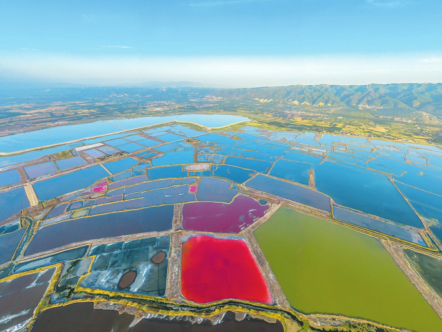 仲夏時節(jié),隨著氣溫升高,運城鹽湖濕地呈現(xiàn)出色彩斑斕的美麗景觀。近年來,運城市大力實施“退鹽還湖”“還湖于民”生態(tài)修復(fù)工程,把鹽湖從礦區(qū)、工業(yè)區(qū)變?yōu)樯鷳B(tài)保護區(qū)、旅游區(qū)。(閆鑫攝)
