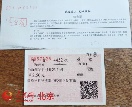 鐵路迷收藏的老豐臺站車票及站臺票。 人民網 李博攝