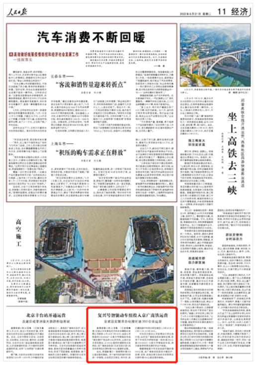 復(fù)興號智能動車組投入京廣高鐵運(yùn)營