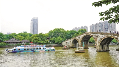 兩艘船2022年3月底進廠,改造前后經(jīng)歷兩個多月,杭州水上發(fā)展集團有限公司相關(guān)負責(zé)人說:“為了更好地發(fā)揮運河游船的文化特色優(yōu)勢,我們緊扣‘中國新時代、杭州新亞運’的目標定位,精心改造升級了兩艘水上巴士。”水上巴士還是亞運特許零售點,游客在船上可購買到心儀的亞運紀念品,船舶運營過程中還會途經(jīng)亞運會吉祥物“宸宸”的原型——拱宸橋,兩岸的市民游客還可與亞運特色船、拱宸橋來個合影。