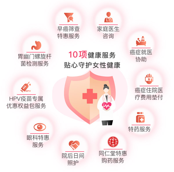 此外,“愛(ài)她保”還為參保人提供HPV疫苗預(yù)約服務(wù)、胃幽門螺旋桿菌檢測(cè)服務(wù)、早癌篩查特惠服務(wù)、家庭醫(yī)生咨詢、癌癥就醫(yī)協(xié)助、癌癥住院醫(yī)療費(fèi)用墊付、特藥服務(wù)、同仁堂購(gòu)藥特惠服務(wù)、院后日間照護(hù)等10項(xiàng)健康服務(wù),為女性和家人的健康全面保駕護(hù)航。