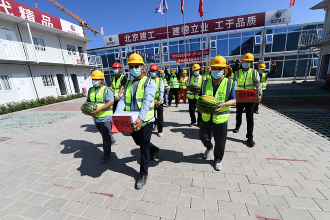 北京市已進(jìn)入盛夏高溫時(shí)節(jié),防暑降溫工作直接關(guān)系到勞動(dòng)者身體健康和企業(yè)生產(chǎn)安全。7月7日,由北京市總工會(huì)主辦的“最美勞動(dòng)者 微笑帶回家”系列活動(dòng)暨清涼送給首都建設(shè)者活動(dòng),在北京建工路橋集團(tuán)通州數(shù)據(jù)中心項(xiàng)目舉行,北京建工路橋集團(tuán)黨委書(shū)記王曉輝代表公司黨委、工會(huì)對(duì)建設(shè)者進(jìn)行慰問(wèn),向奮戰(zhàn)在施工一線建設(shè)者們送去清涼及防疫物資和真摯問(wèn)候。