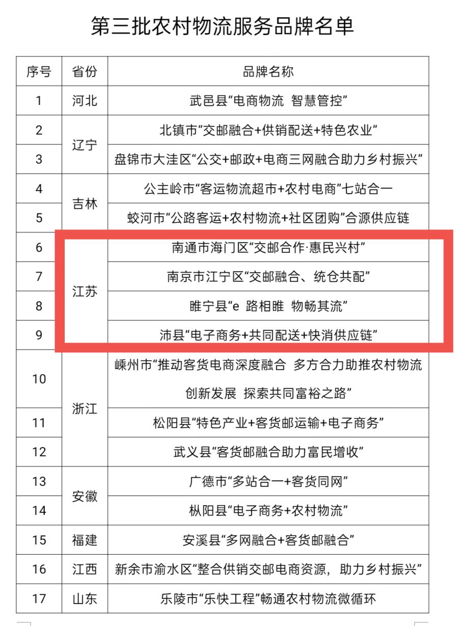 江蘇4項目入選全國第三批農村物流服務品牌
