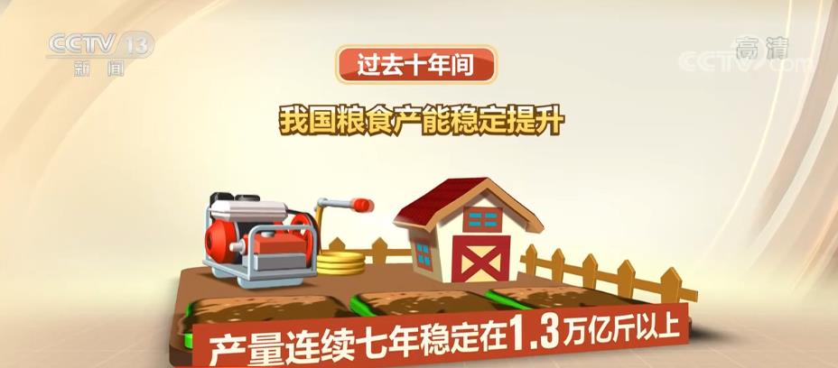 過(guò)去十年間,我國(guó)糧食產(chǎn)能穩(wěn)定提升,產(chǎn)量連續(xù)七年穩(wěn)定在1.3萬(wàn)億斤以上,十年再上一個(gè)千億斤新臺(tái)階。人均糧食產(chǎn)量達(dá)到483.5公斤,高于國(guó)際公認(rèn)的400公斤糧食安全線,做到了谷物基本自給、口糧絕對(duì)安全。