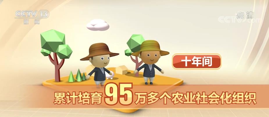 十年間,累計(jì)培育95萬(wàn)多個(gè)農(nóng)業(yè)社會(huì)化組織,服務(wù)面積近17億畝次,服務(wù)帶動(dòng)小農(nóng)超過(guò)7800萬(wàn)戶。全國(guó)農(nóng)作物耕種收綜合機(jī)械化水平從57%提高到72%以上,水稻、玉米、小麥三大糧食作物機(jī)械化率分別超過(guò)85%、90%和97%。