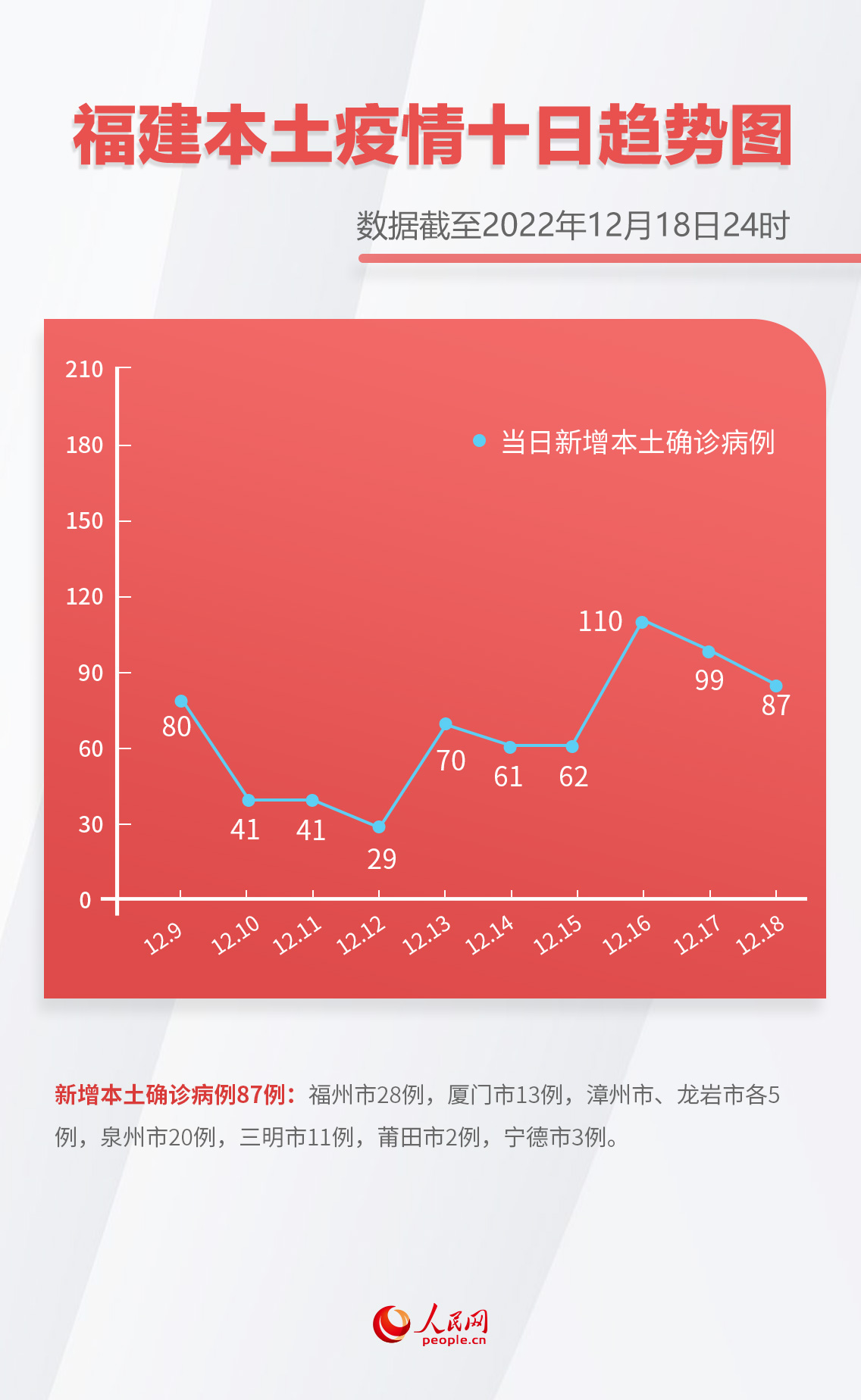 12月18日福建新增本土確診87例 其中福州28例、泉州20例