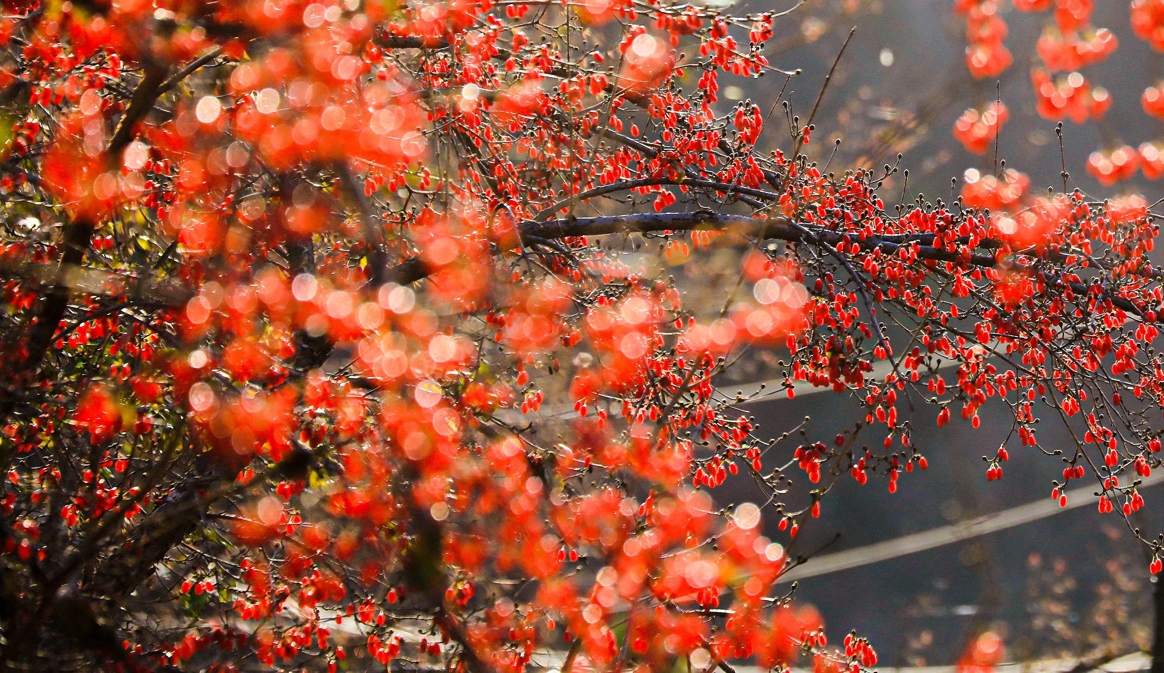 在所有秋色中,有一抹色彩來自漫山遍野的“茱萸紅”。道路旁、清泉邊、土丘上、河道旁,還有人們的院落四周,處處可見顆顆如紅瑪瑙般的山茱萸。